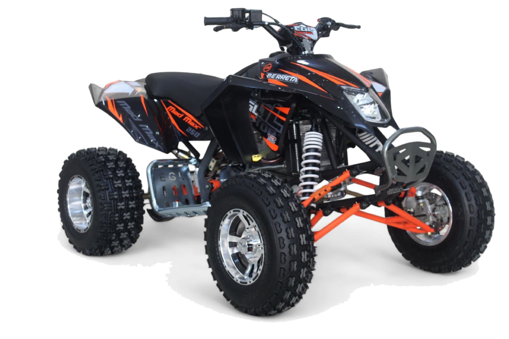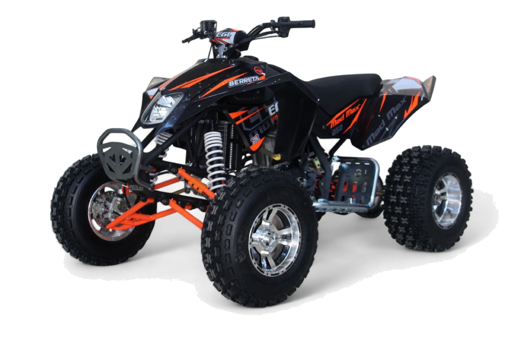 BERRETA Mad Max 250 napędza silnik 172 FMM o pojemności 250cc, chłodzony cieczą. Mokre sprzęgło zapewnia płynne przeniesienie mocy, a manualna skrzynia 4+1 z biegiem wstecznym daje pełną kontrolę nad jazdą. To quad stworzony do dynamicznej i ekstremalnej zabawy w terenie.