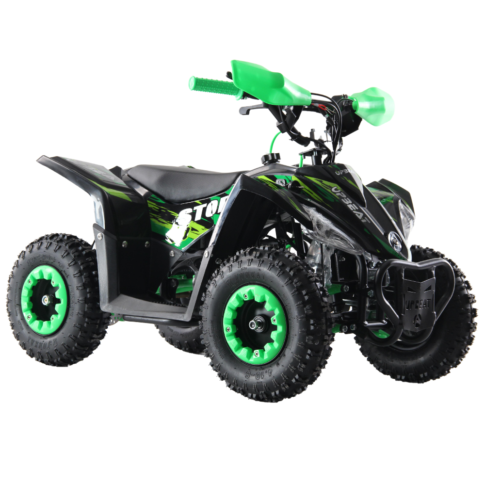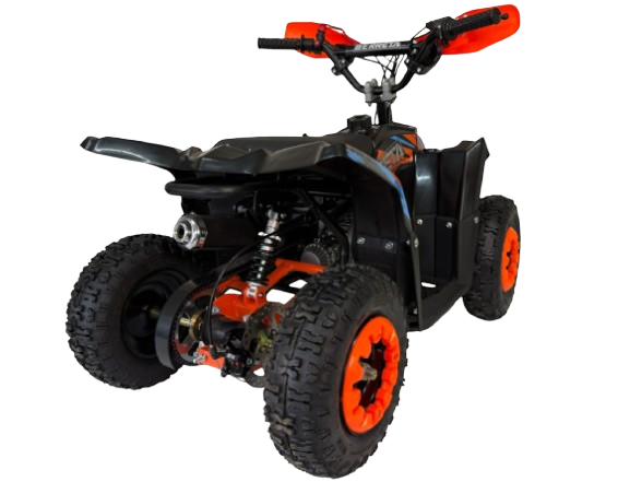 Quad wyposażono w tarczowe hamulce z przodu i z tyłu, co gwarantuje skuteczne hamowanie. Niskie siedzisko na wysokości 320 mm ułatwia dziecku pewne oparcie stóp. Koła 6” z beadlockami zapewniają stabilność i dobrą przyczepność. To komfortowa i bezpieczna jazda w każdych warunkach.