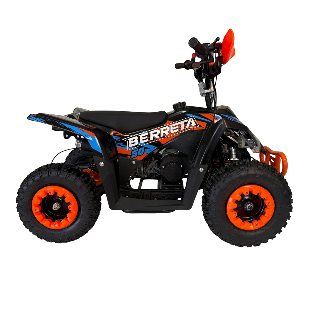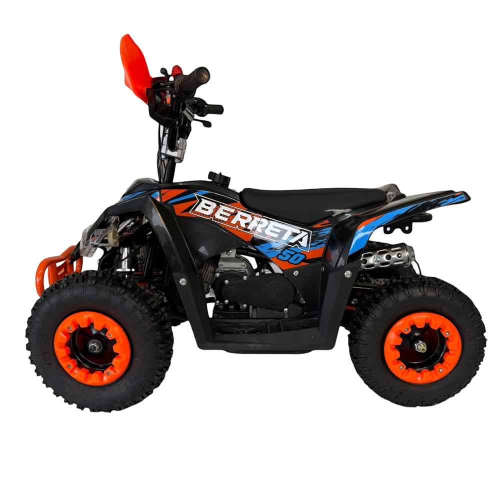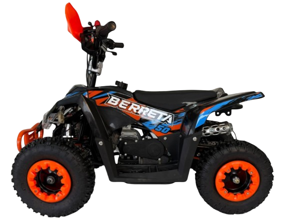 Berreta Flipper 50cc to kompaktowy quad zaprojektowany specjalnie dla dzieci. Silnik 49 cm3 chłodzony powietrzem zapewnia spokojną i bezpieczną jazdę. Automatyczna skrzynia biegów ułatwia obsługę i naukę. To idealny pierwszy quad do zabawy i treningu.