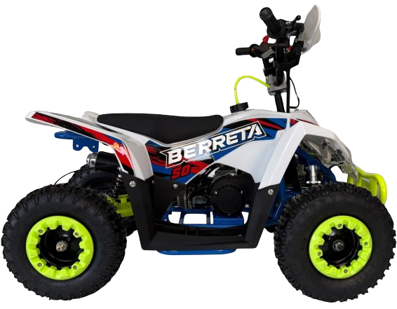 Berreta Flipper 50cc posiada oświetlenie LED oraz osłony dłoni zwiększające bezpieczeństwo. Solidna konstrukcja pozwala na maksymalne obciążenie do 50 kg. Kompaktowe wymiary ułatwiają manewrowanie i przechowywanie pojazdu. To quad, który zapewnia mnóstwo radości najmłodszym użytkownikom.