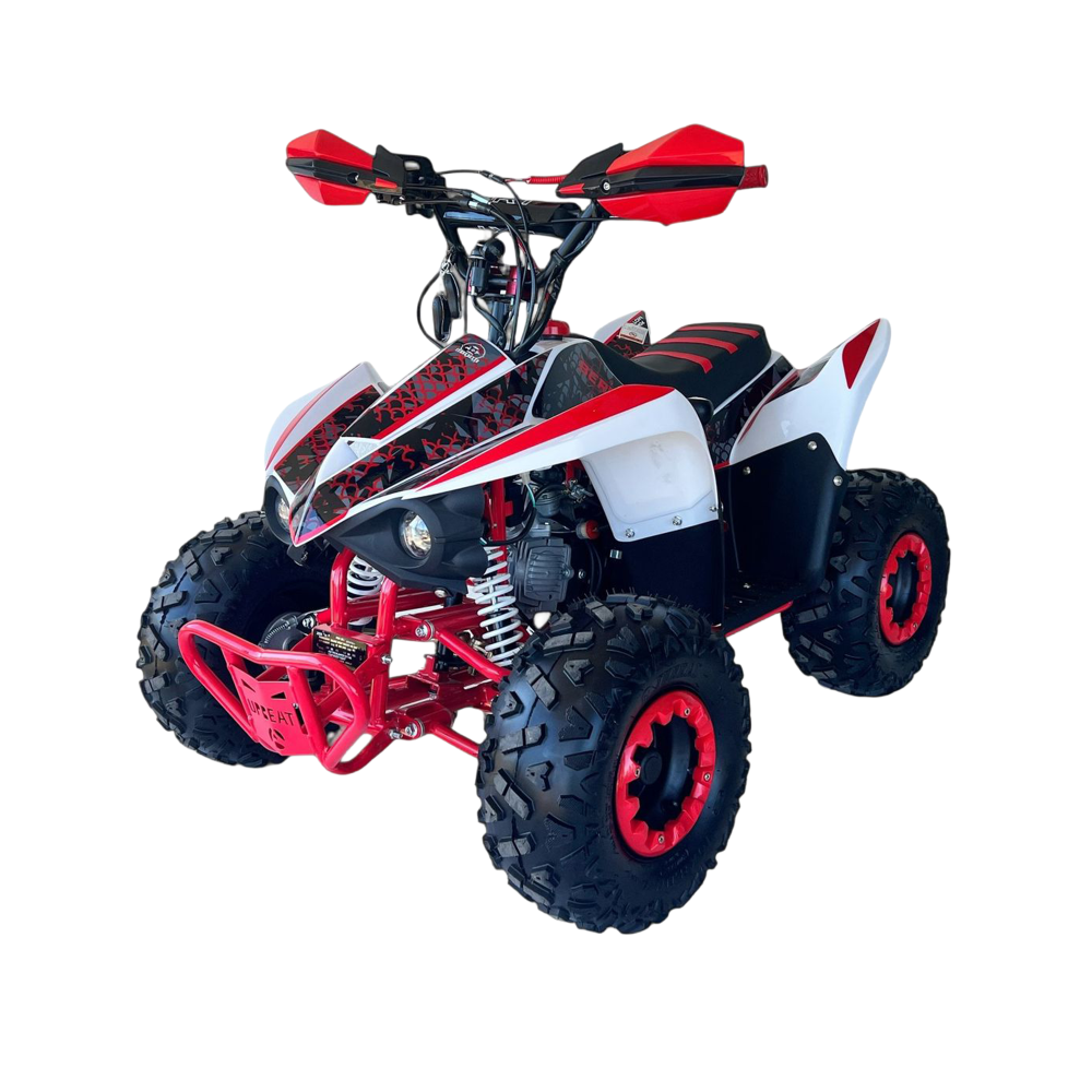 Model BERRETA KIDS 110 posiada alarm z funkcją START-STOP oraz zrywkę bezpieczeństwa. Handbary chronią dłonie i kierownicę podczas jazdy w terenie. Dostępność w kolorze zielonym i czerwonym pozwala dopasować wygląd do gustu użytkownika. To quad stworzony z myślą o bezpieczeństwie i dobrej zabawie.
