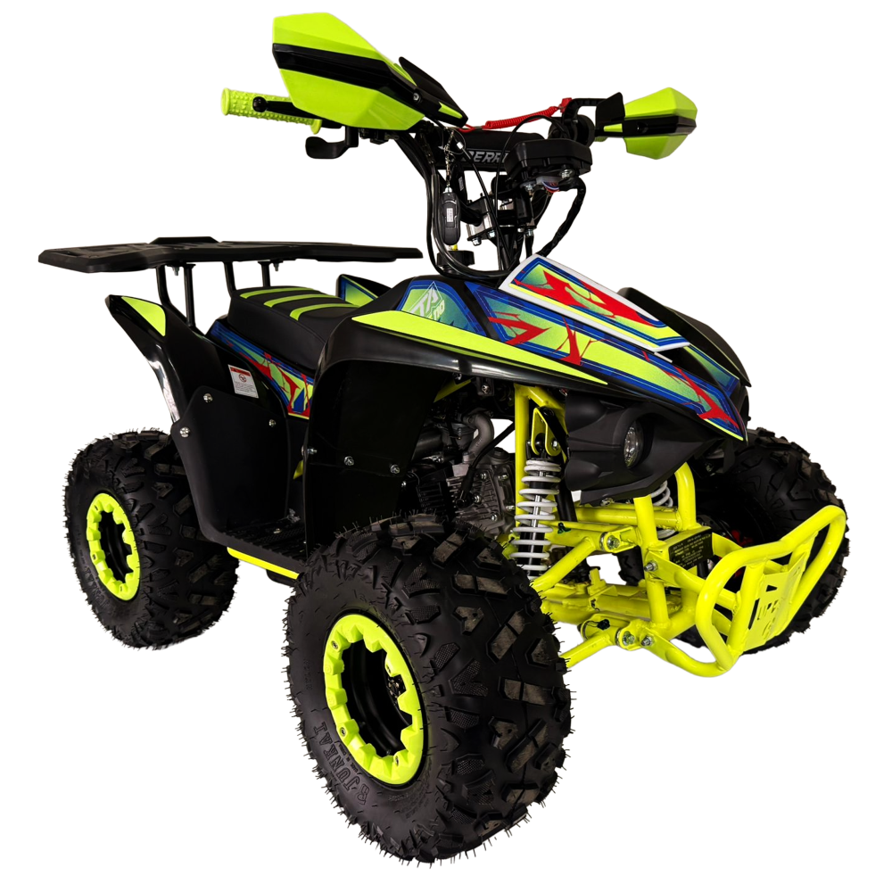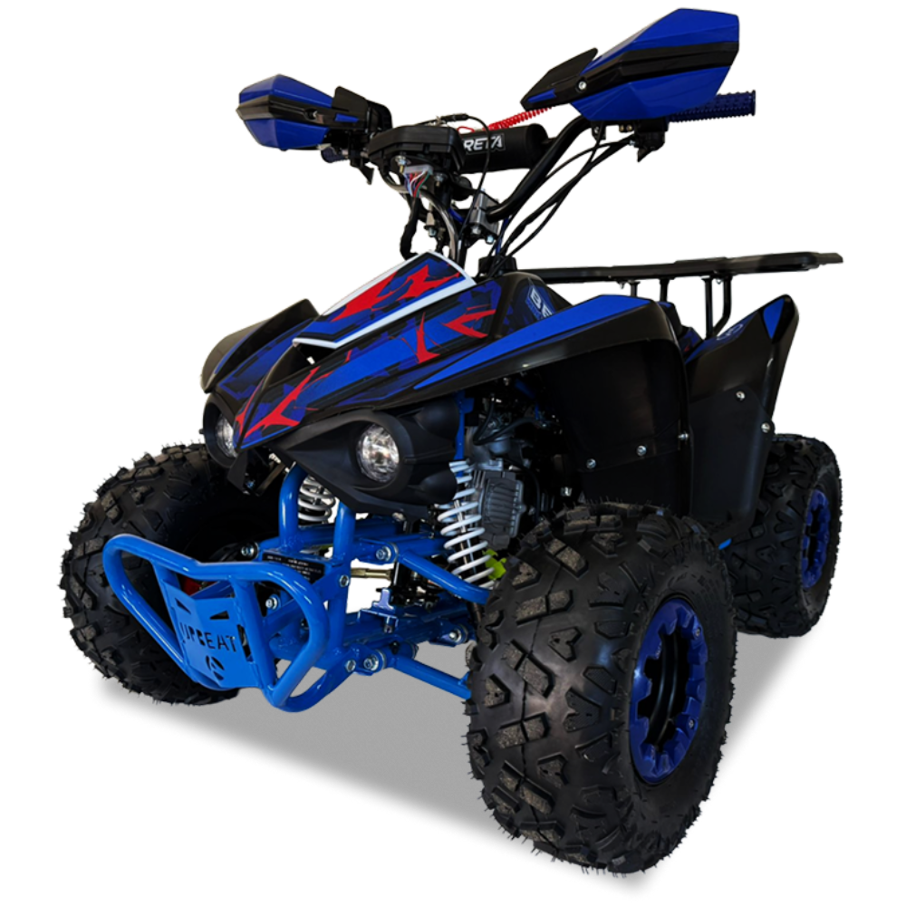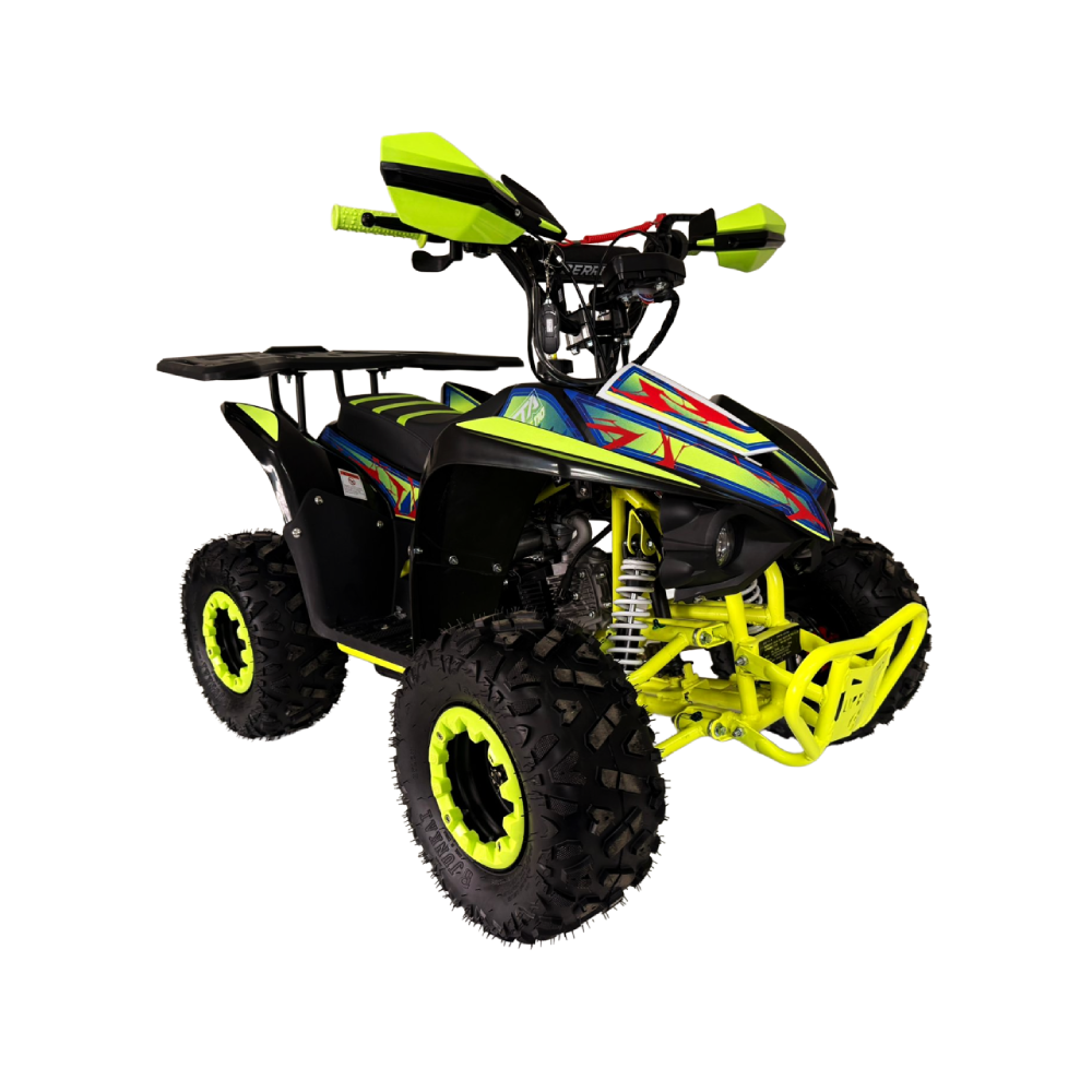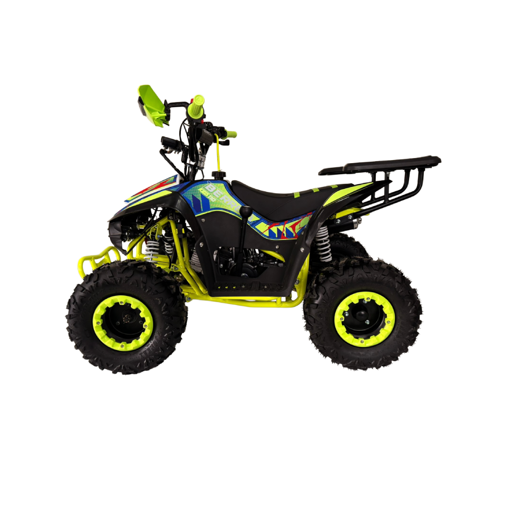 Quad wyposażono w solidne 7-calowe koła z agresywnym bieżnikiem terenowym. Gruby wahacz i napinacz łańcucha zwiększają trwałość oraz odporność na intensywną jazdę. Tylny hydrauliczny hamulec tarczowy zapewnia skuteczne amowanie. To pewność prowadzenia w każdych warunkach.