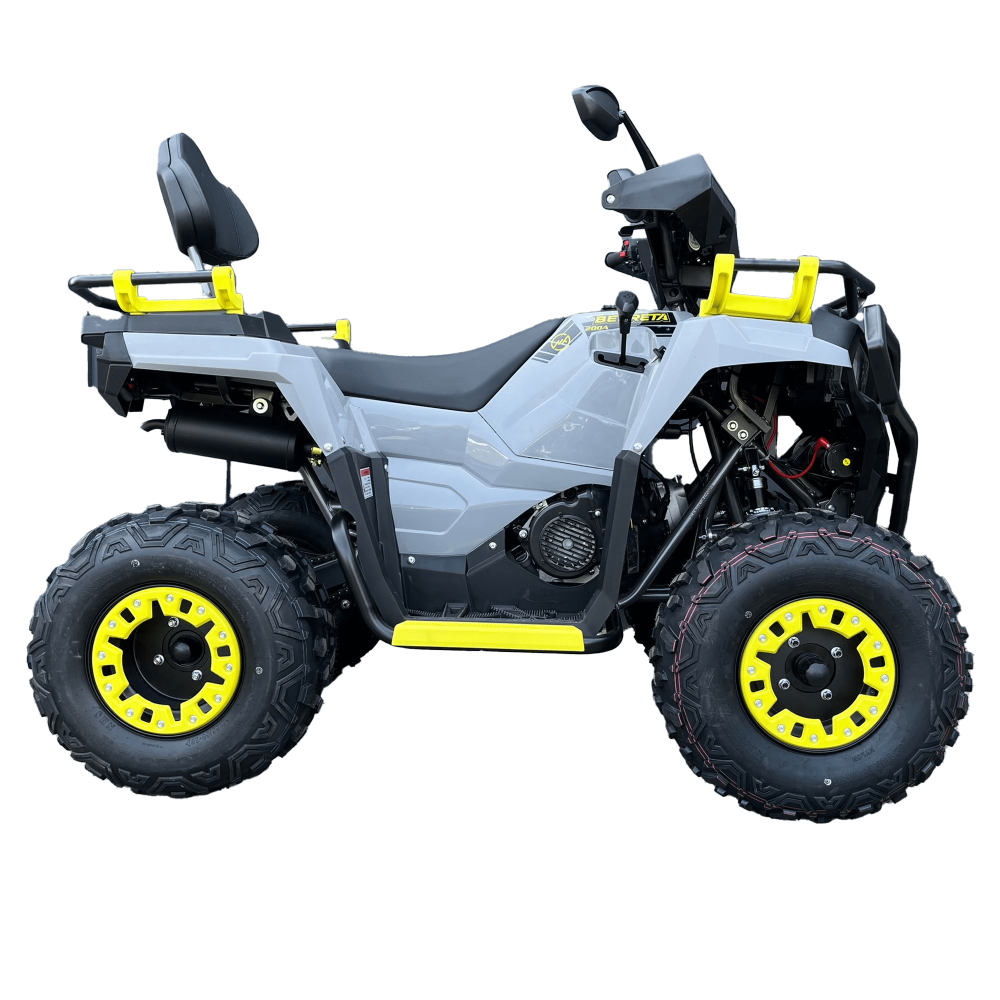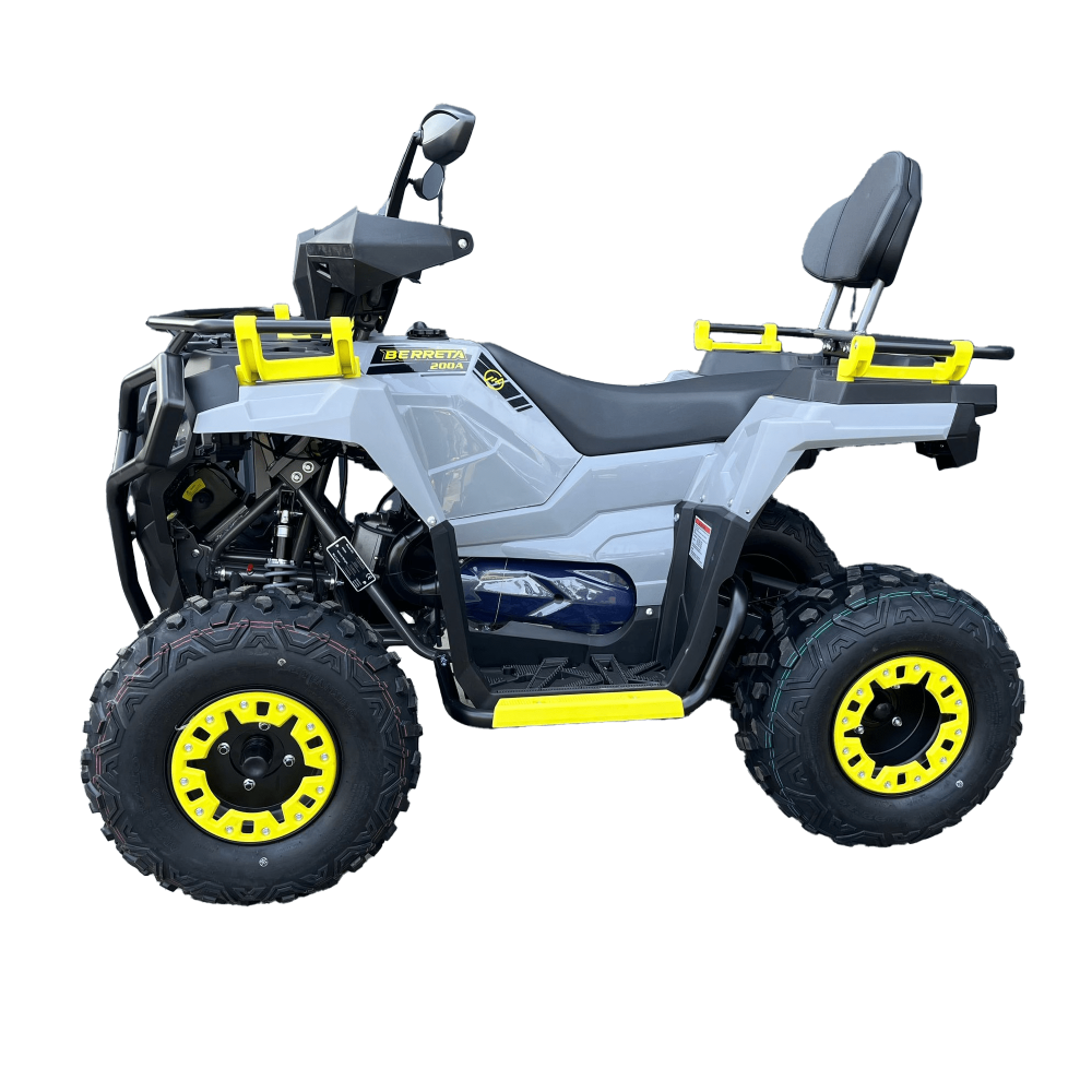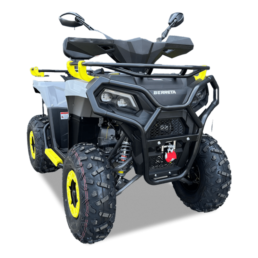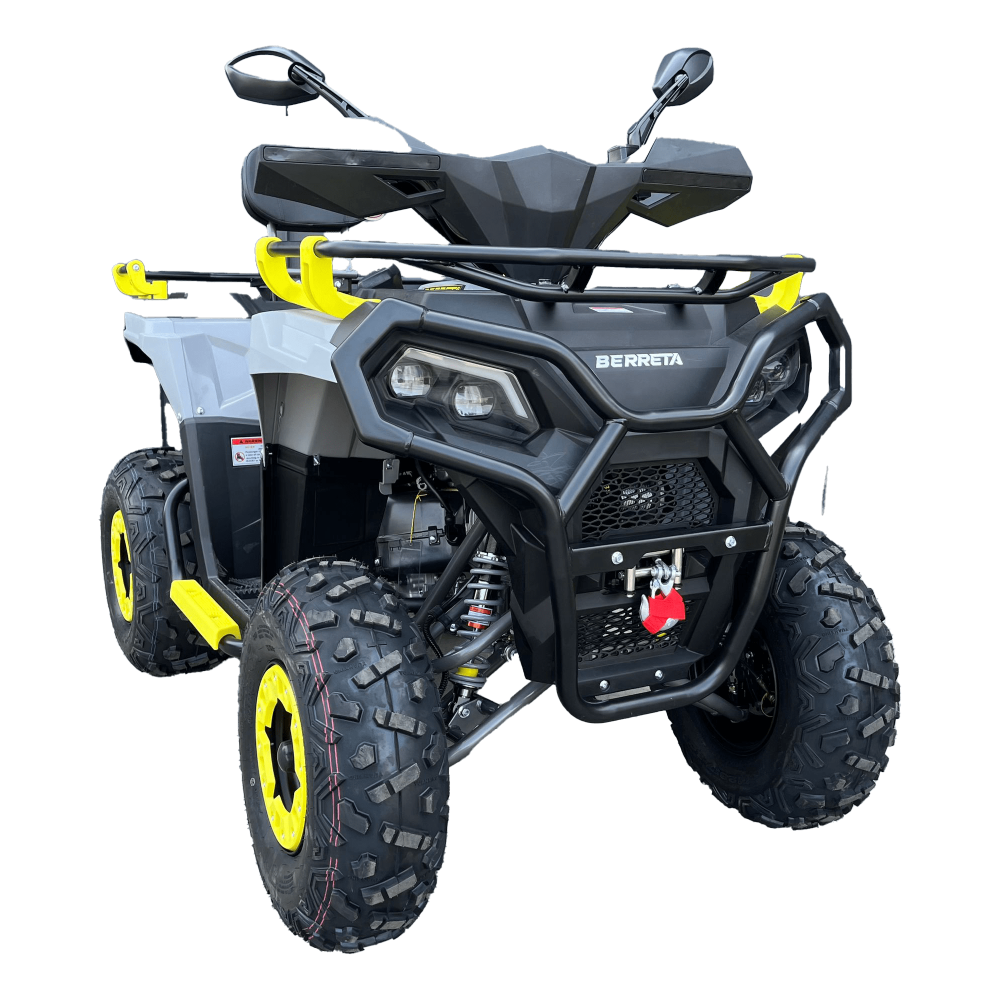 BERRETA HUMMER 200 wyposażony jest w przedni i tylny bagażnik, przedni zderzak oraz hak holowniczy, a przednie światła LED poprawiają widoczność. Wielofunkcyjny wyświetlacz LCD pokazuje prędkość, obrotyi przebieg, a ergonomiczne handbary i oparcie zwiększają komfort jazdy. To quad, który łączy moc, wygodę i praktyczne rozwiązania w jednym.