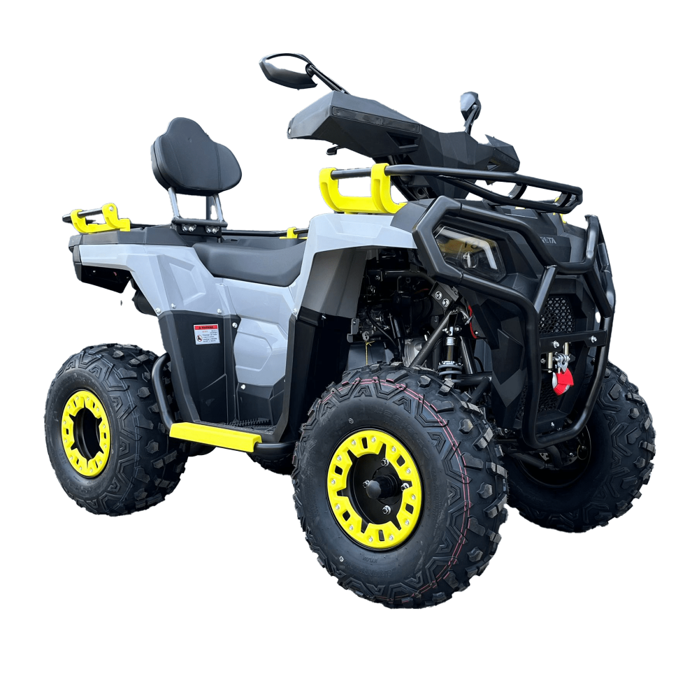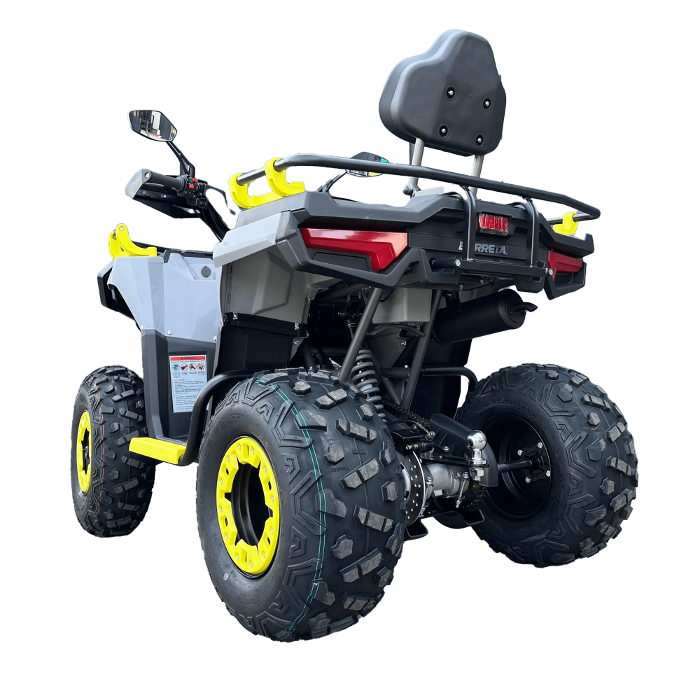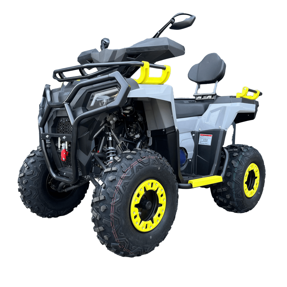 Opony AT 21×7-10 z przodu i 22×10-10 z tyłu w połączeniu z wytrzymałą przekładnią łańcuchową dają maksymalną przyczepność w trudnym terenie. Solidna rama, aluminiowe felgi i stalowe beadlocki zapewniają trwałość i stabilność, nawet przy pełnym obciążeniu do 100 kg. To idealny quad do off-roadu i codziennej rekreacji.
