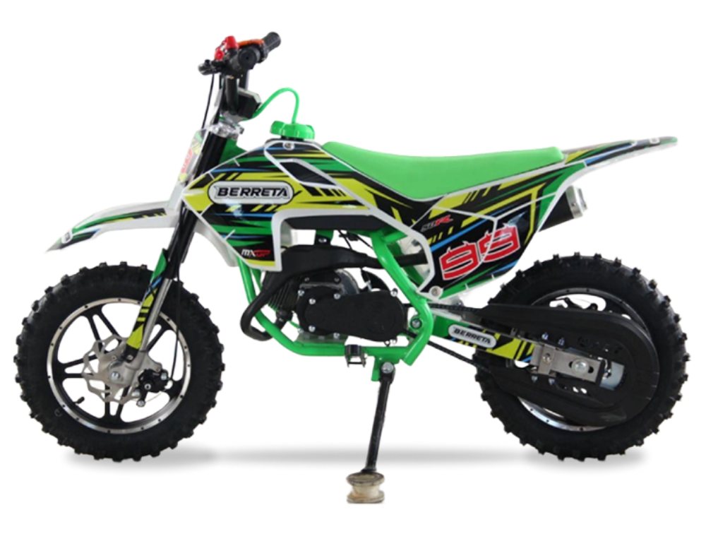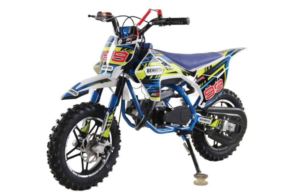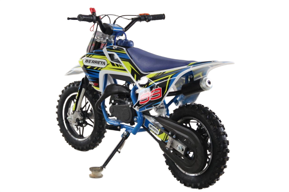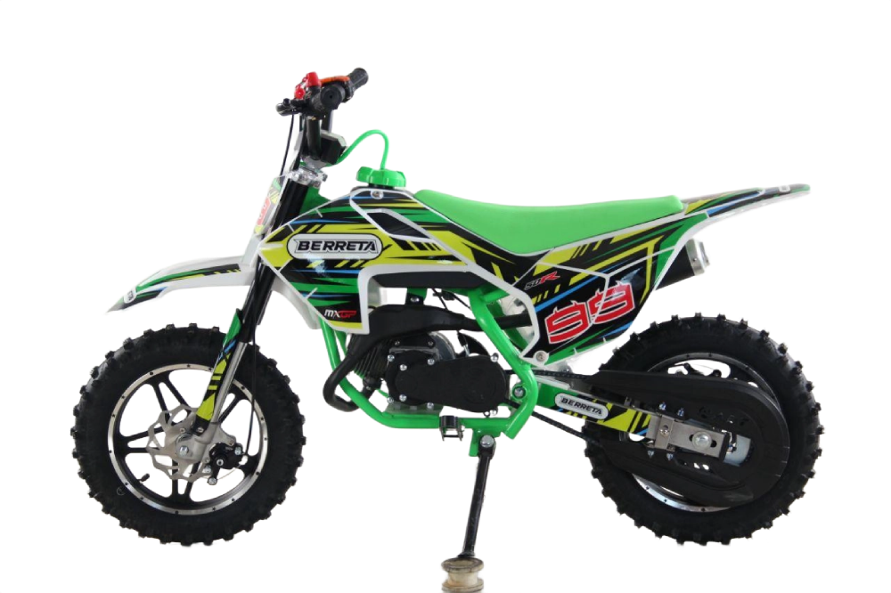 BERRETA 49CC MINI CROSS to niewielki motocykl terenowy stworzony specjalnie dla dzieci od 5 roku życia. Dwusuwowy silnik o pojemności 49 cm3 i mocy 4 KM zapewnia płynną, łatwą do opanowania jazdę. Automatyczna skrzynia biegów ułatwia naukę i pozwala skupić się na zabawie. To świetny wybór na pierwsze motocyklowe doświadczenia.
