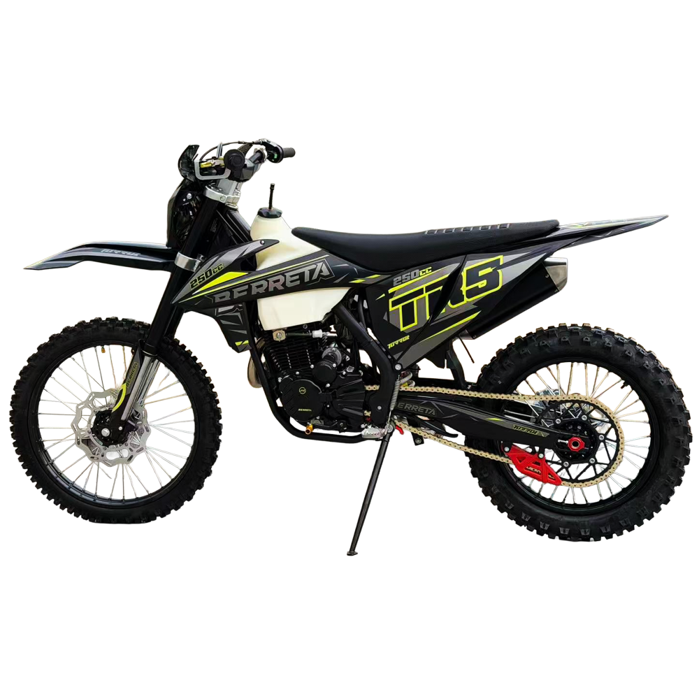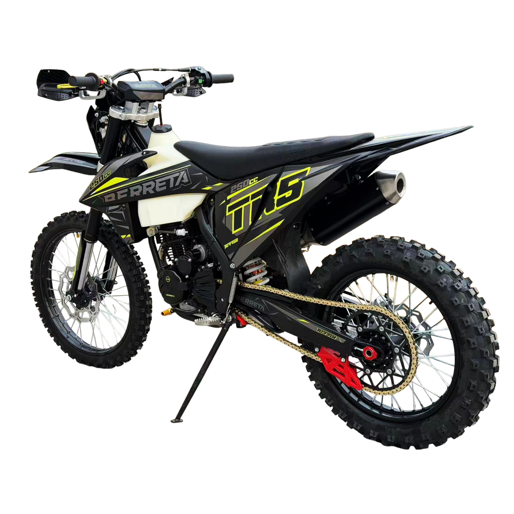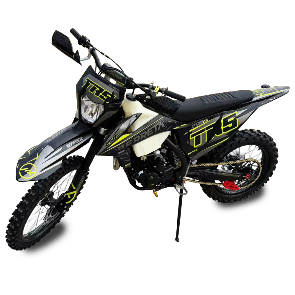 BERRETA TR5 250cc to maszyna stworzona dla tych, którzy szukają solidnej mocy i niezawodności podczas wymagających terenowych wypraw. Zastosowanie wydajnej jednostki napędowej CB250 oraz profesjonalnego gaźnika NIBBI zapewnia płynną pracę i wysoką kulturę jazdy w każdych warunkach. Dzięki podwójnemu systemowi rozruchu – elektrycznemu oraz nożnemu – pojazd jest zawsze gotowy do podjęcia kolejnego wyzwania.