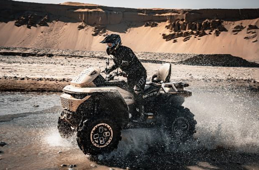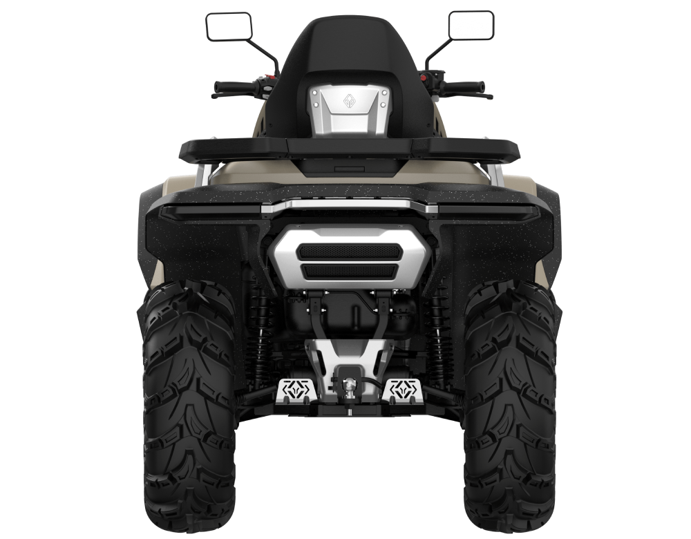Wersja MUD została zaprojektowana z myślą o ekstremalnej odporności, oferując gigantyczny prześwit wynoszący aż 390 mm. Aby zapewnić bezpieczeństwo podczas pokonywania przeszkód wodnych, pojazd wyposażono w wysoko mieszczony układ chłodzenia oraz specjalne wloty CVT i filtry powietrza chroniące silnik przed zalaniem. Całość osadzono na potężnych, 30-calowych oponach terenowych typu MUD z systemem Beadlock, które gwarantują trakcję tam, gdzie inne quady dawno by utonęły.